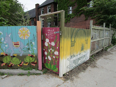 I've been painting part of a mural on a fence around a community garden. Working with the collective Buck Teeth Girls Club. It's located on Milky Way Avenue in Parkdale, go take a look!